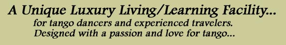 ...This newly renovated elegant French Style Suite has high ceilings, wooden floors, antique doors and tango studio. It contains all the amenities needed to make your trip enjoyable, convenient, secure and unforgettable. A short walking distance to many famous tango milongas: "Marabu" Milonga at lower floor of Casa Maipu and "Confiteria Ideal," two blocks away. Also a short distance away are “Gimnasio,” “El Beso,” and “El Arranque.” |